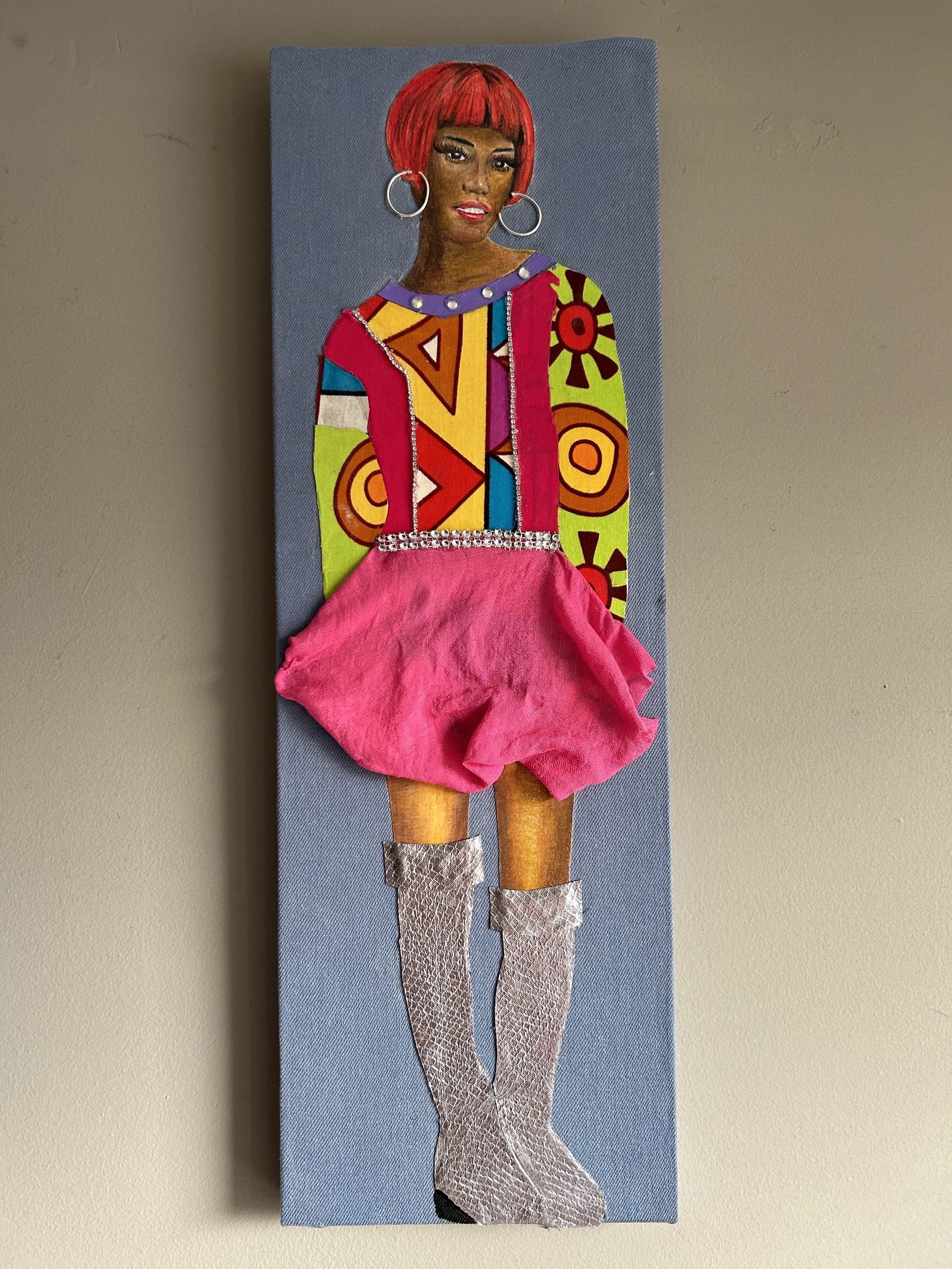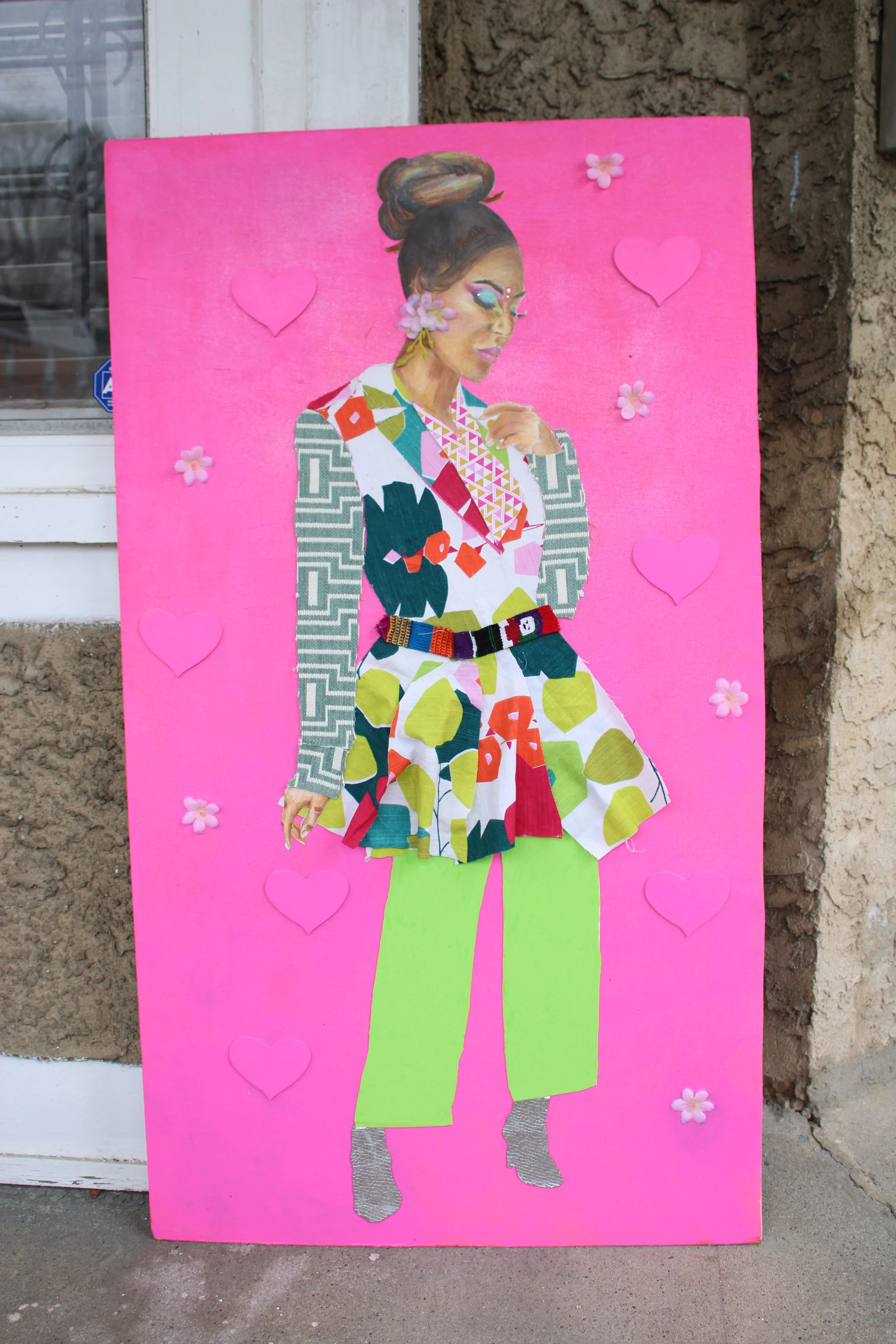 My purpose for this series was to save unwanted clothing/accessories/shoes from being thrown into landfills and reuse them to make art. I use fabric scraps, unwanted jewelry that are a bit useless on their own but have the potential to become something better. So much of our unwanted items go to waste on a regular basis. I wanted to make an effort to help eliminate some of that waste if possible. I have always loved playing around with fabrics - making accessories, and decking out old clothes and shoes. This led me to merge this medium with figure drawings. Fashion has always been a creative outlet for me, so this way of creating art has become a new and fun way to express myself!